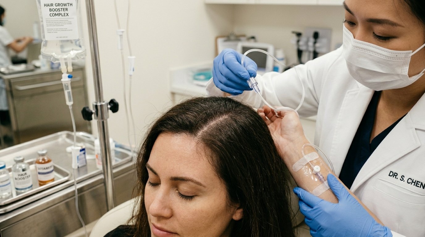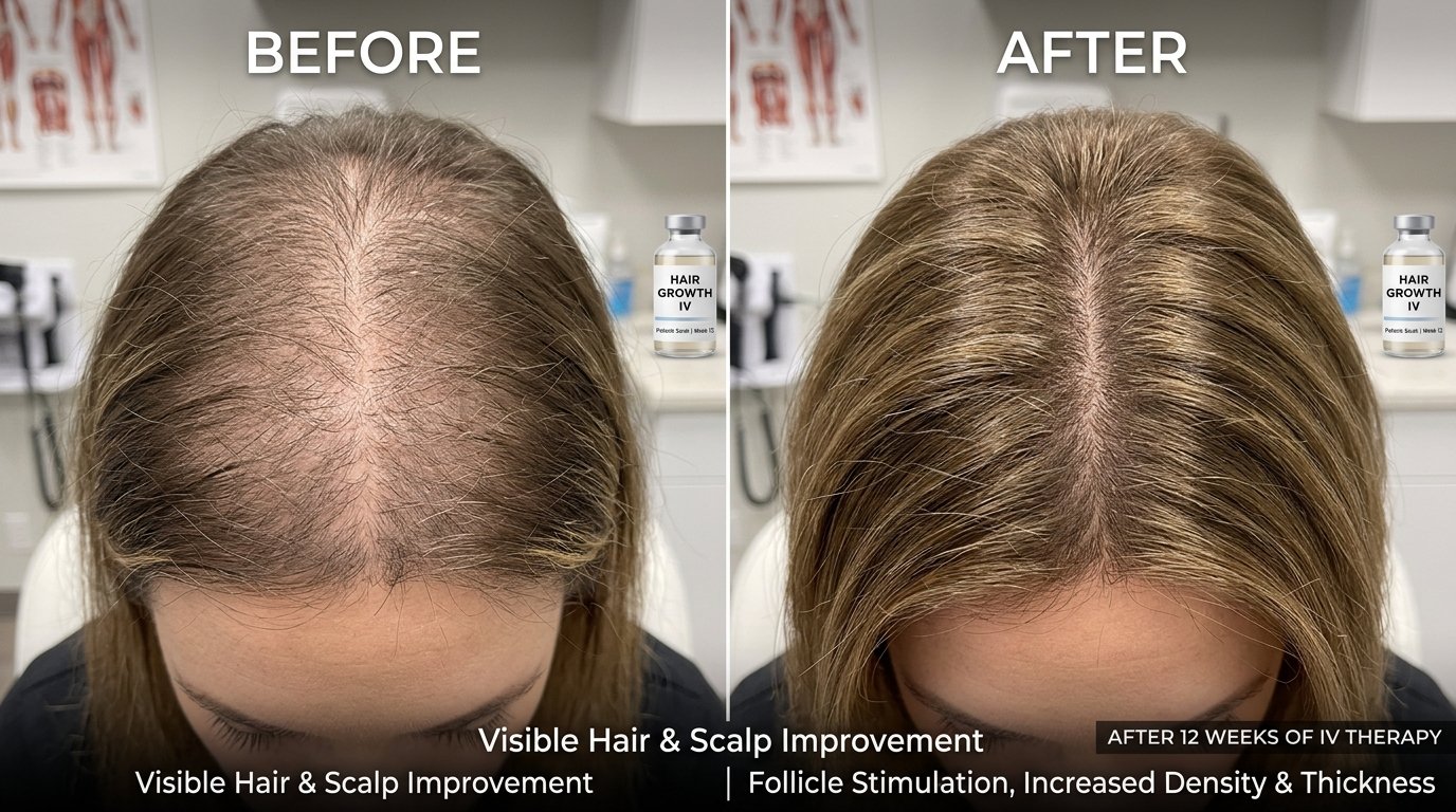 Systemic internal nutrient infusions for structural hair integrity. We bypass the digestive system to deliver maximum Biotin and Keratin-building blocks directly to the bloodstream.