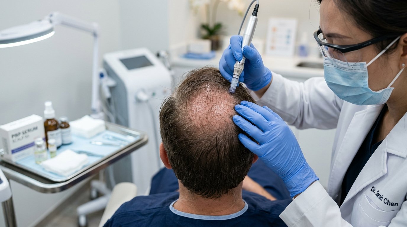 Precision restoration for structural integrity and biological vitality. Our hair protocols merge deep nutrient delivery with advanced regenerative medicine.