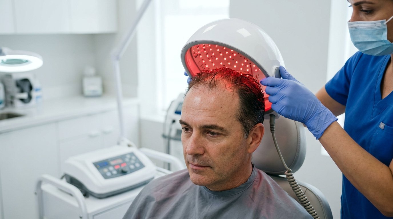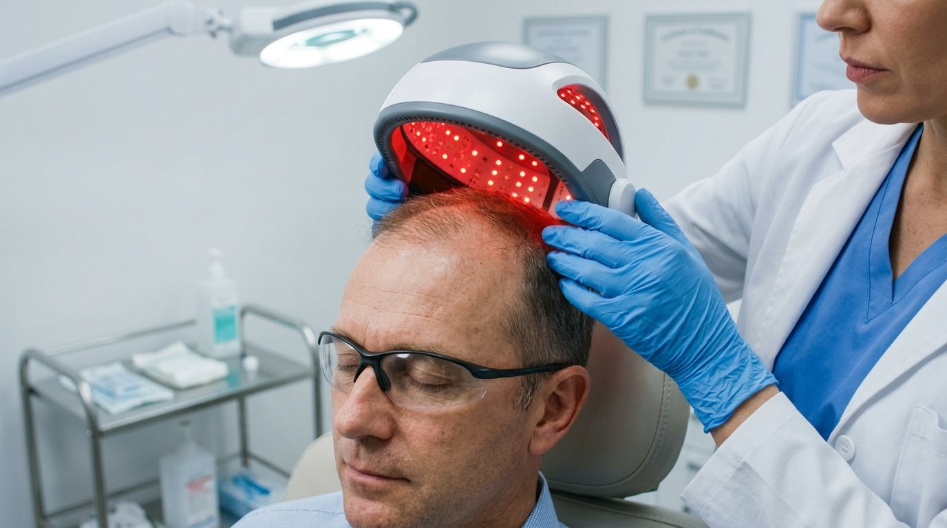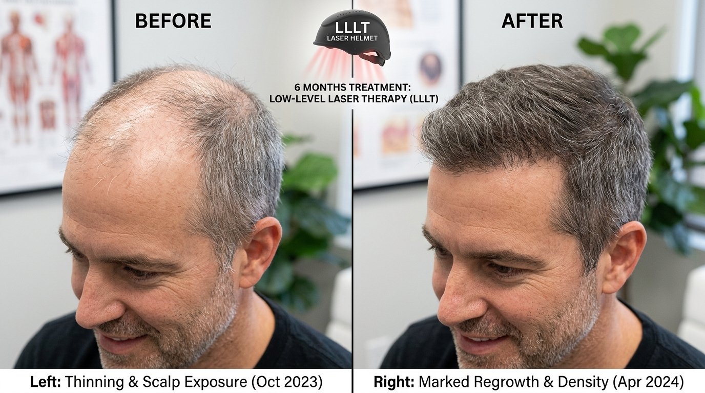 Low-level light therapy (LLLT) engineered for scalp cellular activation. A safe, non-invasive protocol to increase ATP production and blood flow to the hair roots.